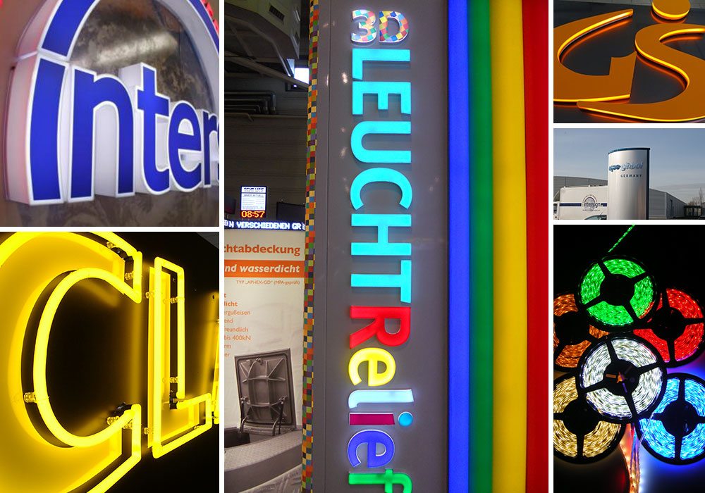 oder -scheiben ausgestattet. Acrylglas ist witterungsbeständig und ist auch alternativ in bruchfester Ausführung lieferbar. Es werden im Grunde drei unterschiedliche Bauweisen ausgeführt. Die preisgünstige Variante mit Frontplatten zum einschieben oder einhängen, die optisch elegante mit kantenverklebten Acrylhauben und die Methode der tiefgezogenen Acrylhauben, bei der eine entsprechende Stückzahl gefordert ist um eine kostengünstige Fertigung zu erreichen. Wir verarbeiten im Schwerpunkt die kantenverklebte Variante, da hier kein kostenintensiver Formenbau erforderlich ist. Es gibt noch eine Vielzahl weiterer Möglichkeiten mit Leuchtwerbemitteln eine effektive Werbeaussage zu treffen.